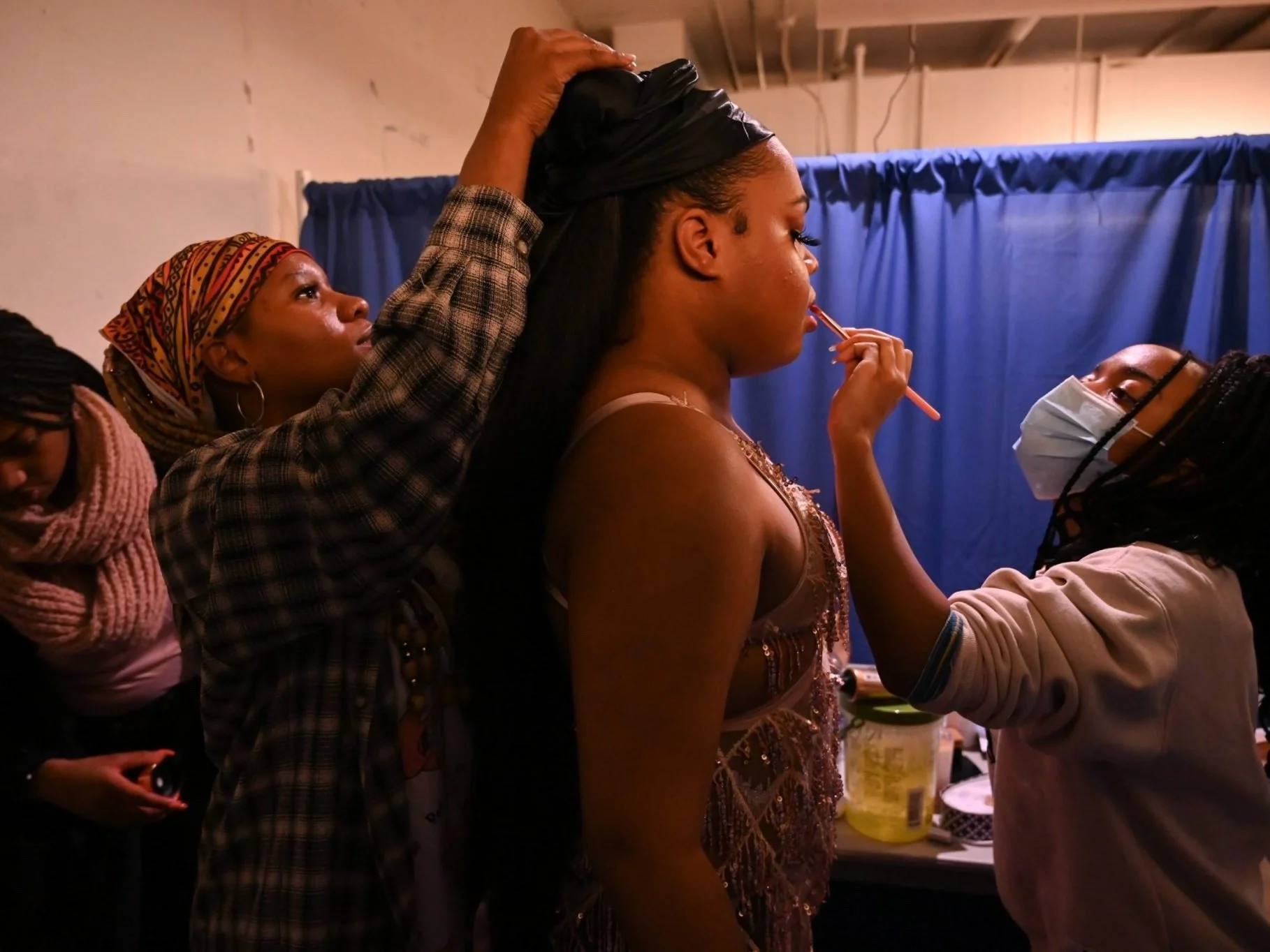 A finalist walks through the transformation into Dirty Lucciano for SU Pride Union's 20th annual Drag Show finals.